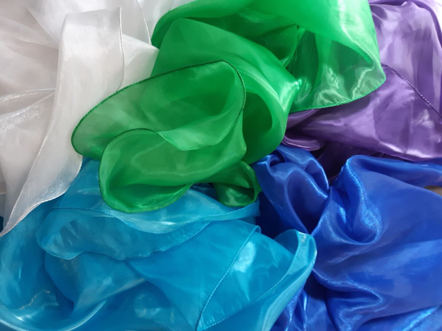 De dansdoeken zijn fijn in gebruik. Laat je inspireren door al die mooie kleurige stoffen en kies de kleur die je aanspreekt en je hart in beweging zet.